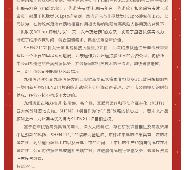 湖北一公司自研新冠口服新药临床试验...